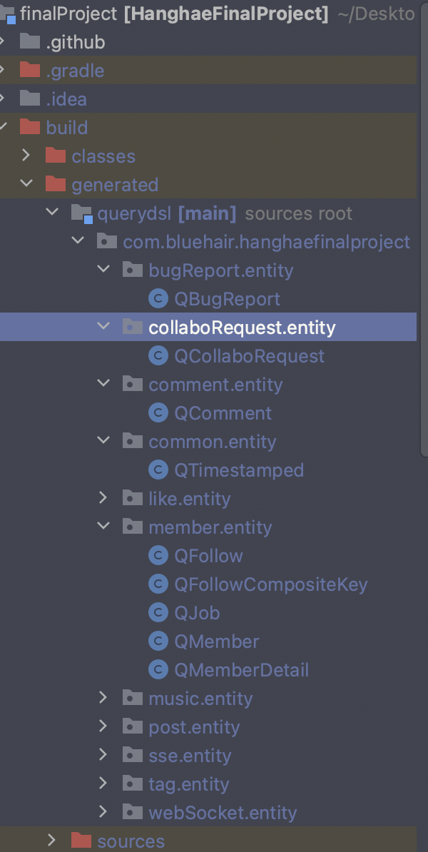Tasks-> other -> complieQuerydsl 을 실행합니다.