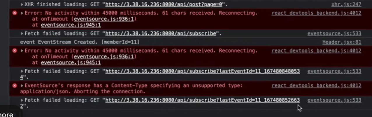 SSE(Server-Sent-Event)를 사용해서 알림기능을 만들기로 결정을 하고 약 2주동안 고생하면서 결국에는 성공(?)을 시켰습니다. 완전하다고는 할 수 없지만 이제는 왠만하면 SSE를 사용하지는 않고 다른 옵션을 시도해볼 것 같습니다. 로컬에서는 잘 돌아갔는데 프론트랑 연결하면서 팡팡팡팡팡! 에러가 하루가 멀다하고 터졌거든요. 산넘어 산이었습니다. 이번 포스팅에서는 다른 블로그들은 언급하지 않고 넘어가는 SSE 알림 기능 관련 에러 총정리를 하려고 합니다. 저처럼 헤매지 마시길.