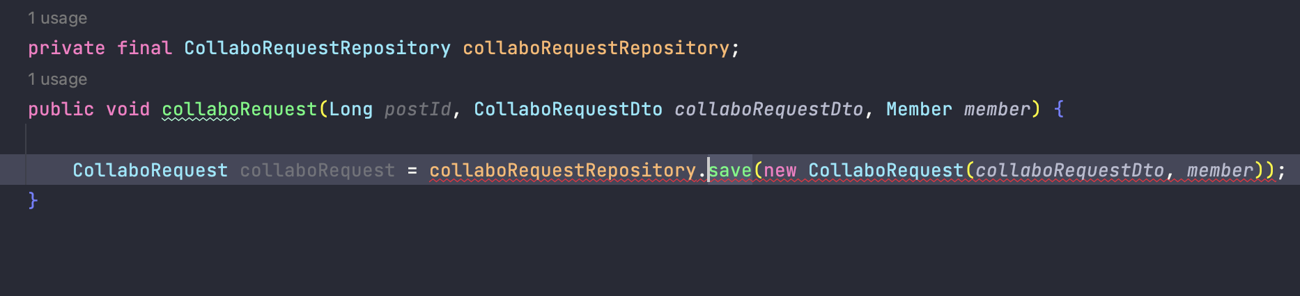 저희 팀에서 구상하고 있는 프로젝트의 핵심 기능은 콜라보 리퀘스트 요청입니다.