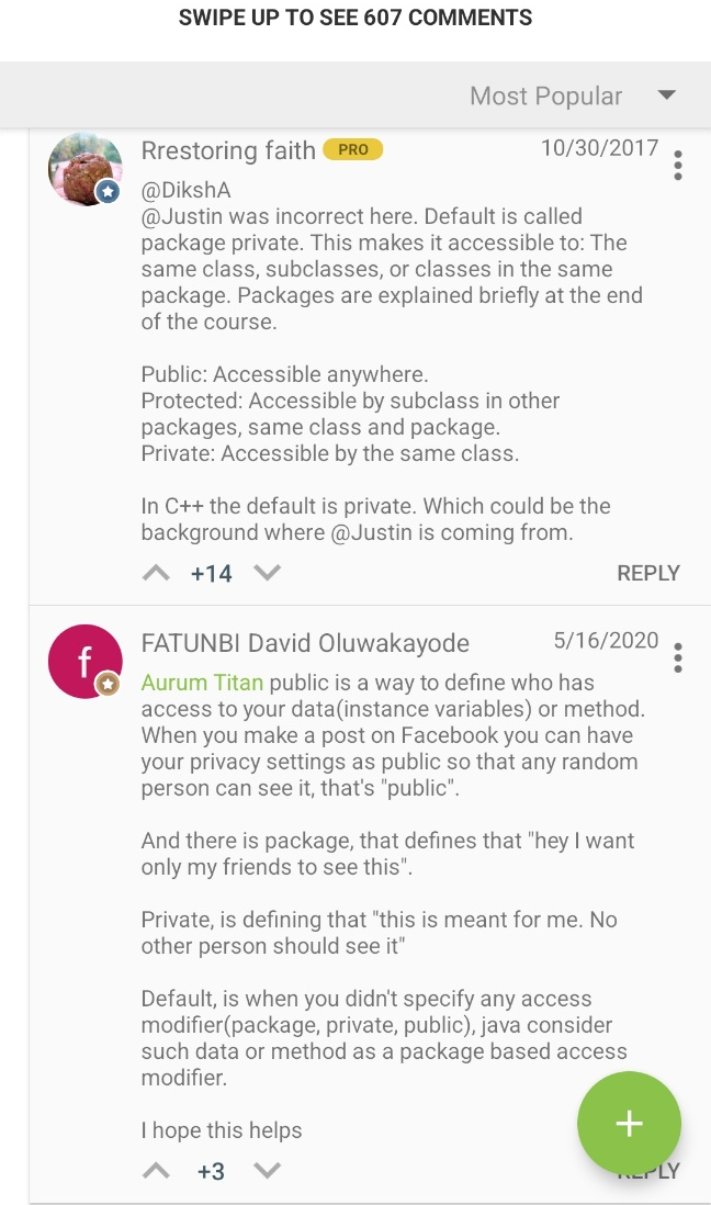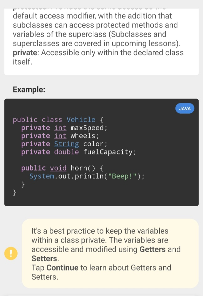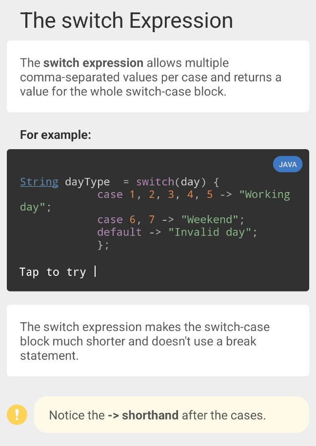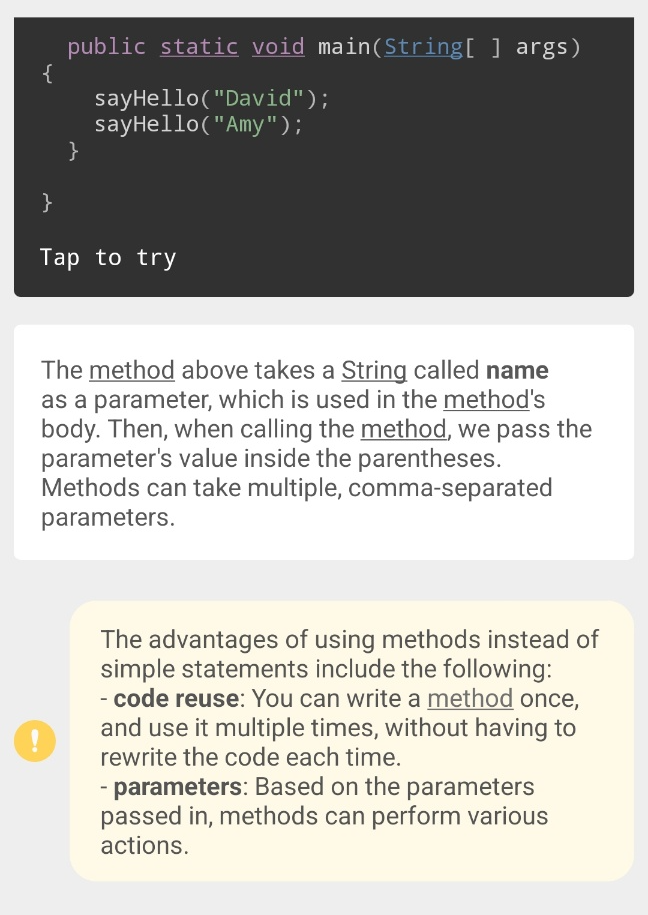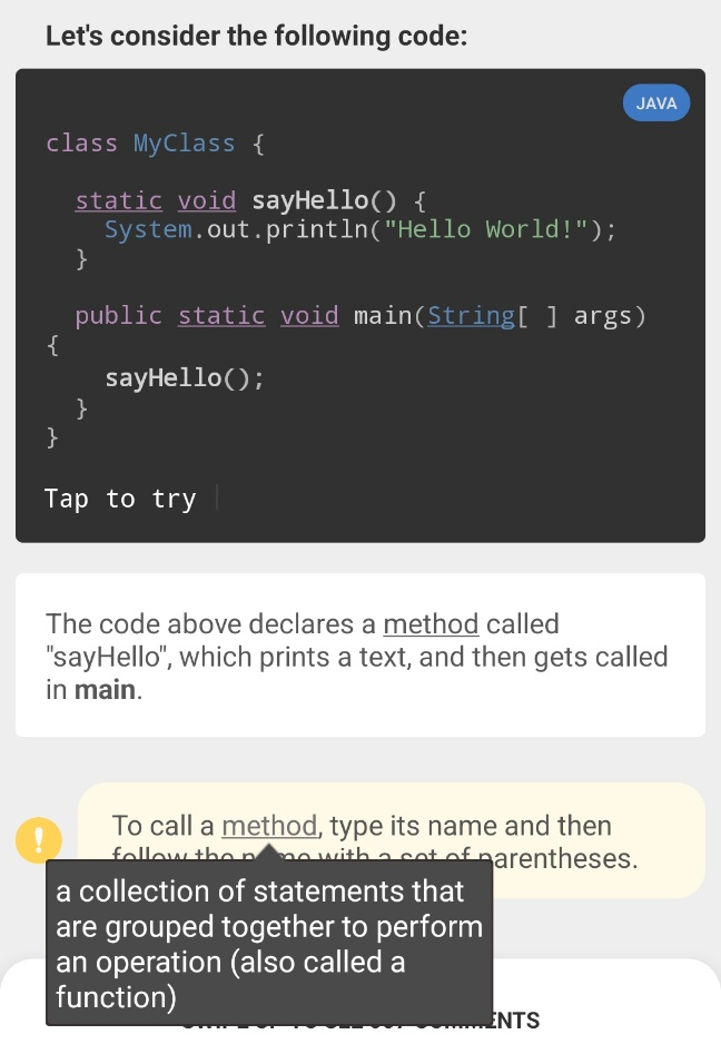 Sololearn에서 제공하는 Java 언어 학습은 총 60개 레슨으로 이루어져 있습니다. 현재는 아직 40번째 레슨에 머물러 있는 상태에요. 뒤로 갈수록 어려워져서 그렇습니다. 부트캠프 핑계로 Sololearn을 놓고 있지만 이번주 일요일까지는 Sololearn의 Java를 끝내 보도록 하겠습니다. 어차피 저랑은 당분간 친해지려고 노력해야하는 언어입니다. 이 포스팅에서는 공부하다가 헷갈리거나 다시 복습하고 싶은 부분을 캡쳐해서 정리해보려고 합니다.