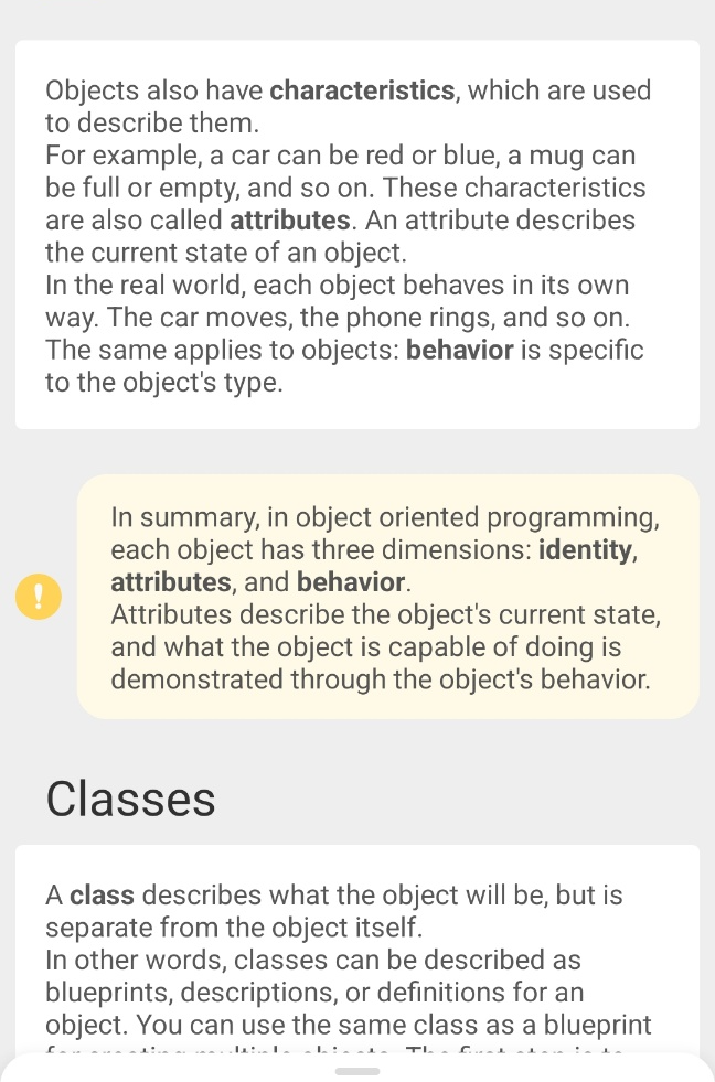 - behavior - what the object is capable of doing