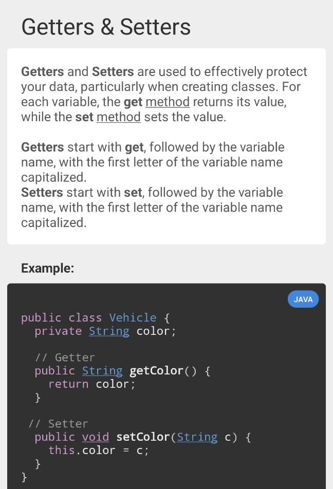 - Getter: get변수이름; 변수 이름 첫글자 대문자 - return the value